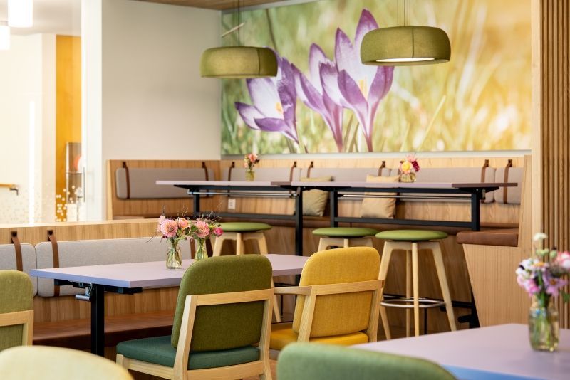 Im September 2012 wurde unser neues Pflegezentrum mit 80 stationären Pflegeplätzen und einem Tagestreff eröffnet. Im 2018 wurden weitere 40 Pflegeplätze im Haus Chriesibaum - dem Haus für Menschen mit Demenz bereitgestellt. Das GerAtrium verfügt über moderne Einzel- und Doppelzimmer, die den höchsten Standards entsprechen. Durch diese Entwicklung hat sich das GerAtrium zu einem Symbol der kontinuierlichen Anpassung und Verbesserung in der Pflege entwickelt und trägt stolz seine Geschichte als Fundament für eine zukunftsorientierte Pflege und Betreuung.